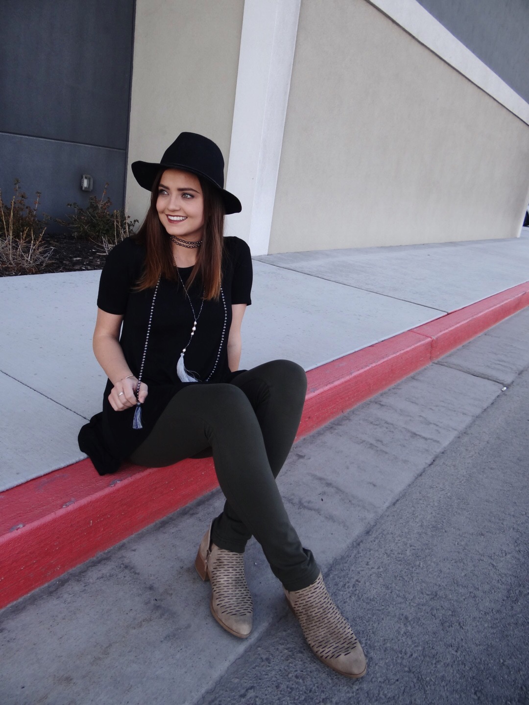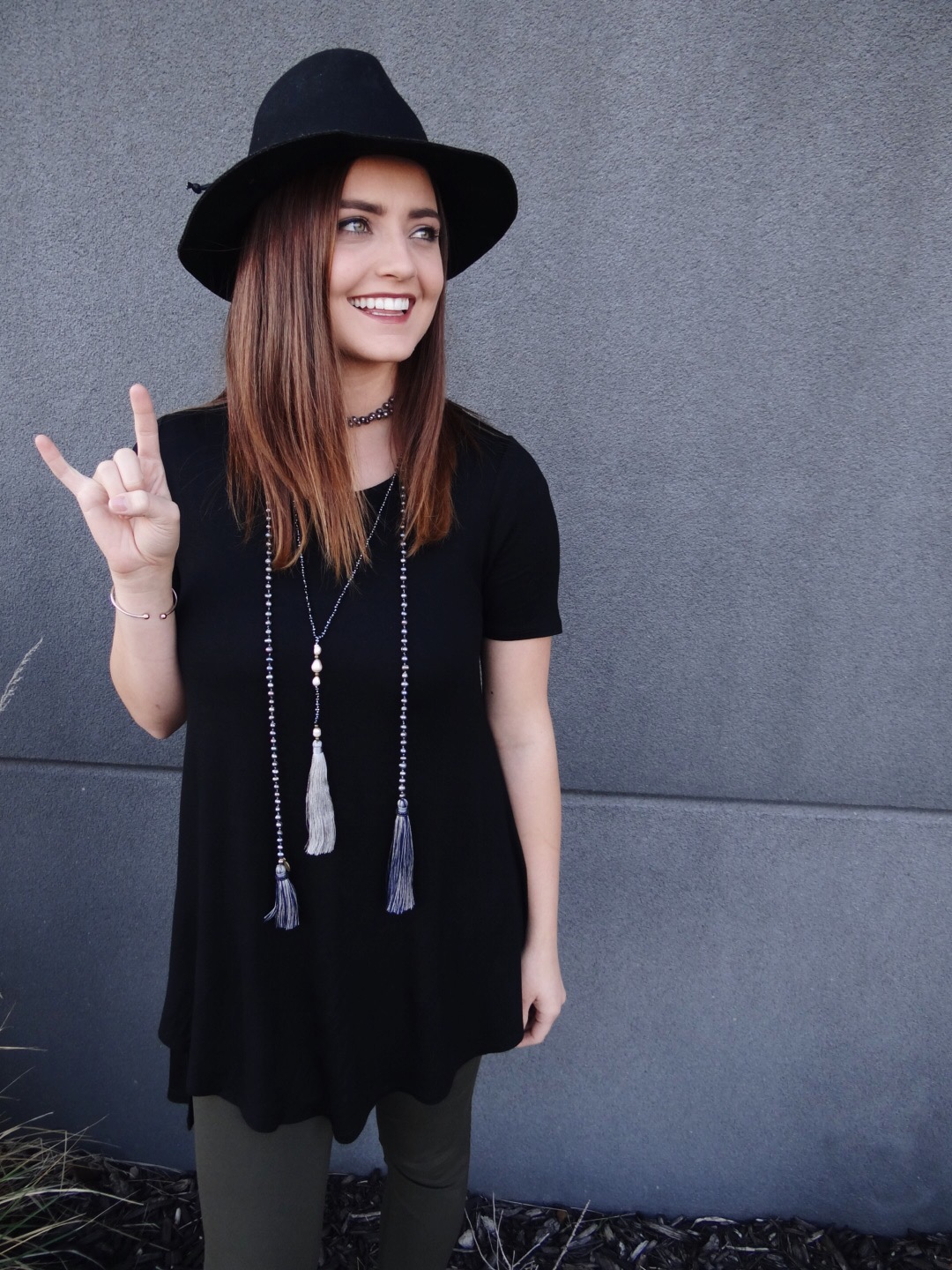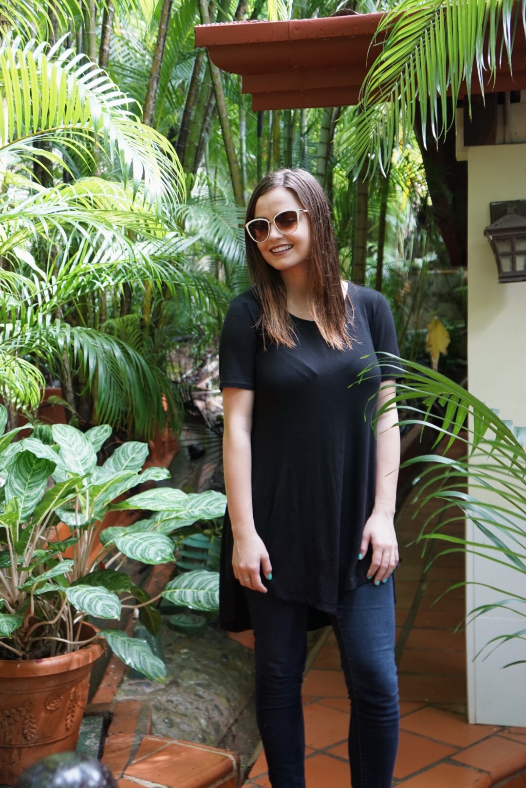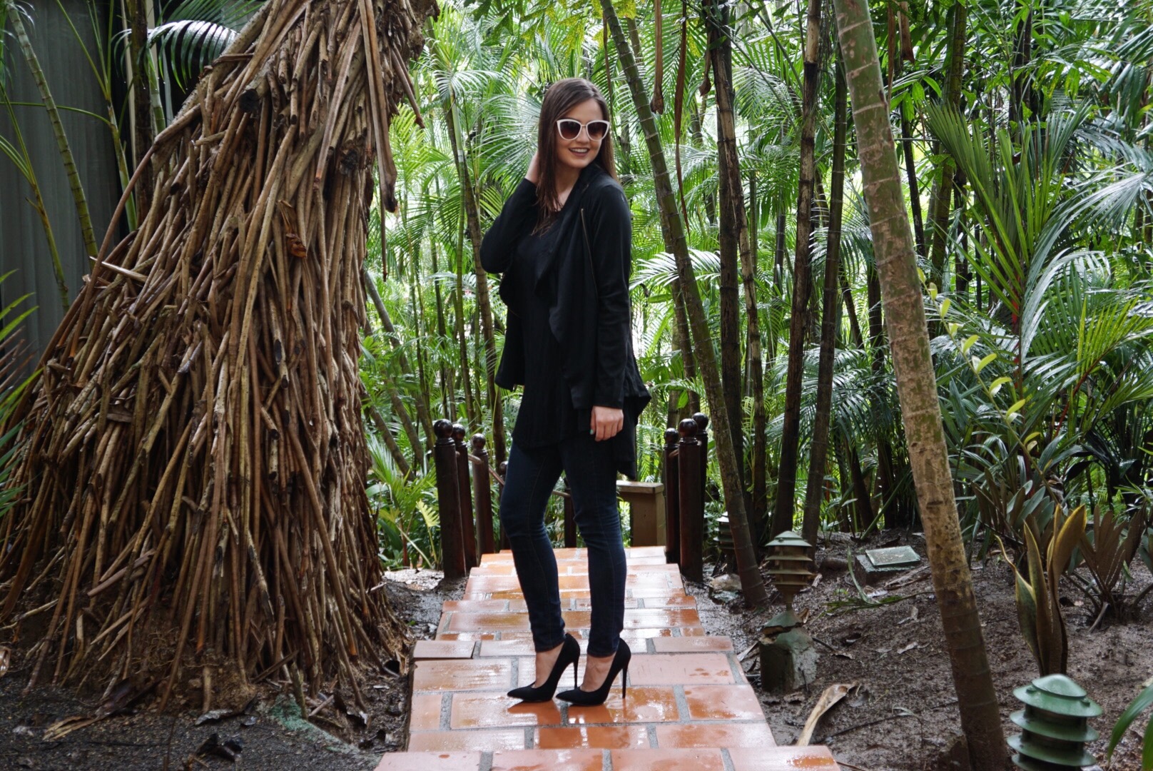 I love going on vacation because it’s an excuse to get some cute attire… right?! This outfit was one of my favorites during our trip. I felt so fancy in my Miss It Girl heels and Boutique Amore zip jacket! I don’t wear all black very often so I loved having the gold zipper to add some detail.