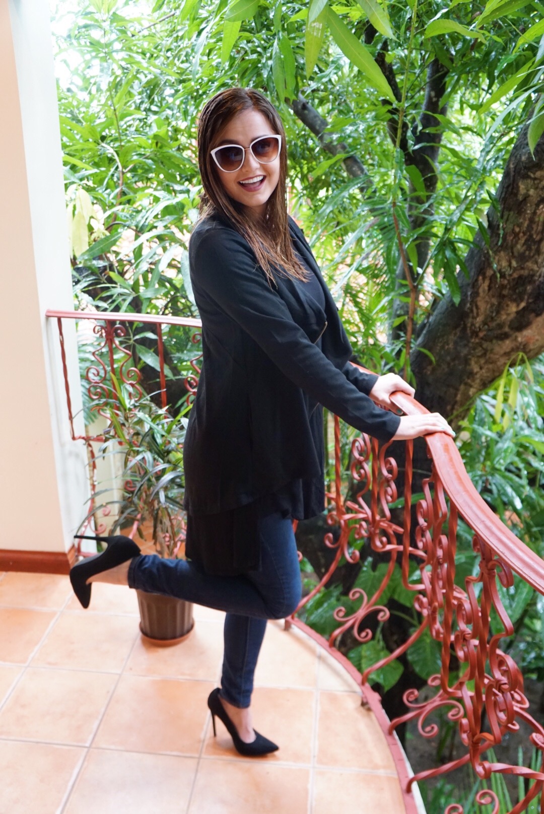 Sunglasses// Francescas Zip Jacket- CO // Boutique Amore Shirt- CO// Brulla Girl LLC Jeans// Forever 21 Pumps – CO // Miss it Girl