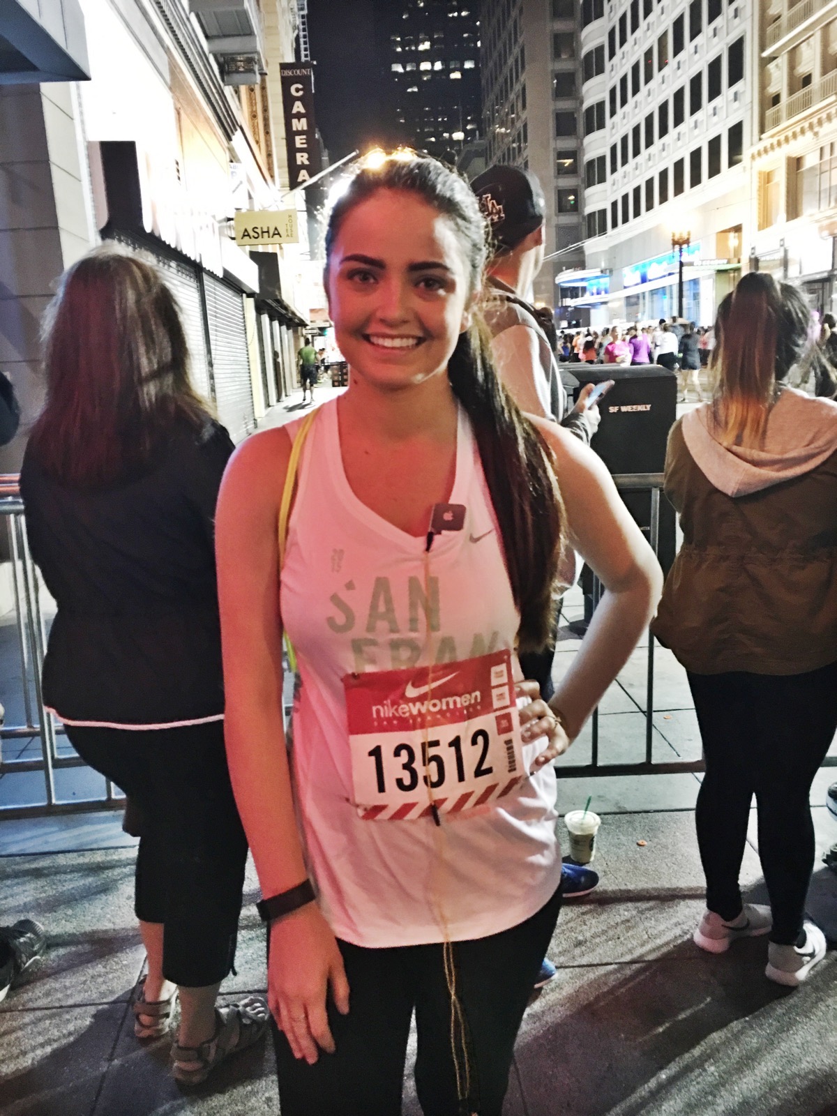 I had to wake up at 4:15 AM to get everything ready and eat my pre-race breakfast, which was half of a bagel and a banana. I drank about 16oz of water right when I woke up and a few sips before I started my race. We had to drive up to San Francisco, which took about an hour, so it gave me some time to wake up and mentally prepare!